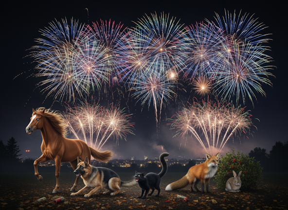 Dein "Spaß" zu Silvester bedeutet für viele Tiere Angst, Panik oder sogar den Tod. Bitte verzichtet auf Feuerwerk! Danke im Namen der Tiere.