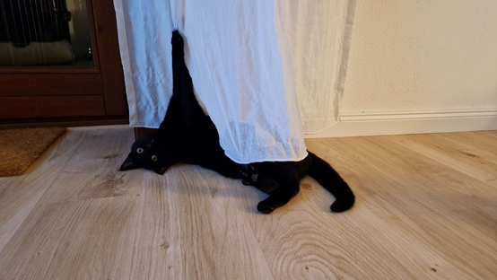 Die beiden haben sich sehr gut bei uns eingelebt und verbringen ihre Tage vor allem mit schlafen, kuscheln, Vögel beobachten und spielen. In den ersten Tagen haben sie ihr neues Zuhause erkundet. Luna war dabei deutlich mutiger. Choco hat sich einen neuen Raum erst angeschaut hat, wenn seine Schwester schon einmal durchgelaufen war. Waschmaschine, Fernseher und Staubsaugroboter wurden am Anfang sehr skeptisch begutachtet. Inzwischen haben sie sich aber dran gewöhnt. Beim Staubsaugroboter kann man auch super mit der sich drehenden Bürste spielen.