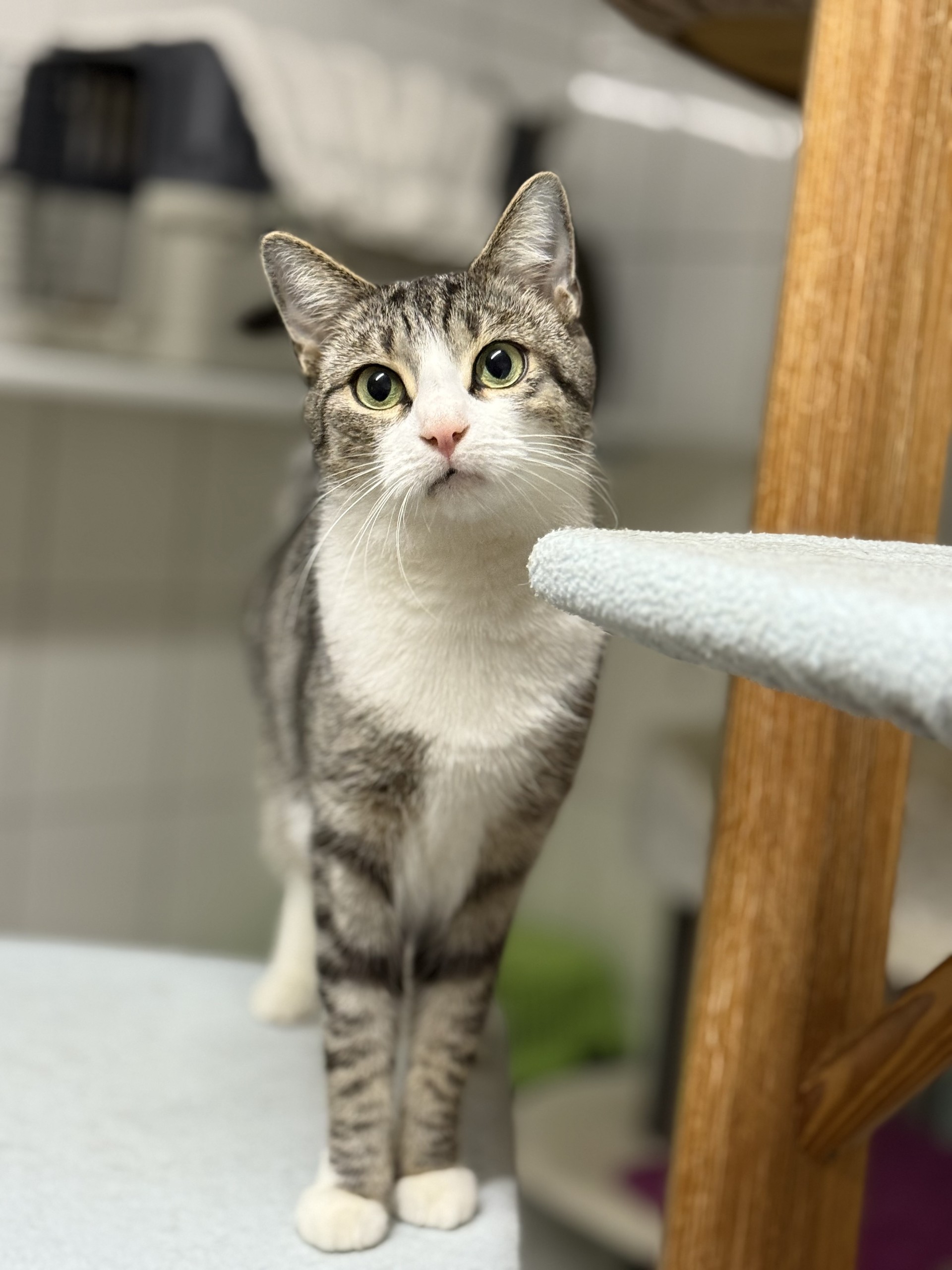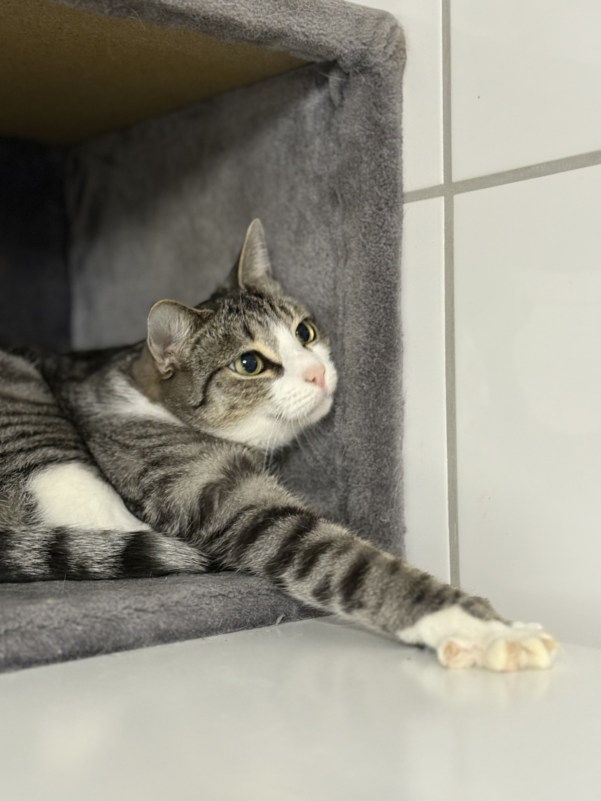 Lina ist eine charmante junge Katze mit einer feinen Mischung aus Neugier und Zurückhaltung.