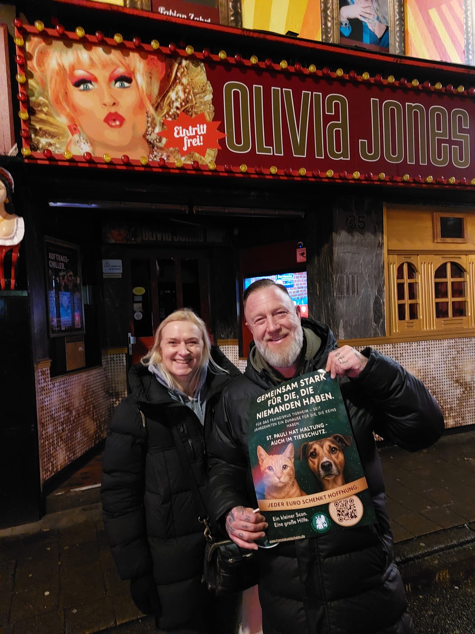In vielen Lokalitäten auf dem Hamburger Kiez findet ihr zukünftig Plakate und Bierdeckel mit QR-Codes, die euch direkt auf die Spendenseite des Franziskus Tierheims leiten. So kann jeder - ganz einfach von unterwegs - ein paar Euros spenden und vielleicht dann noch fröhlicher den Abend beim Feiern ausklingen lassen.
