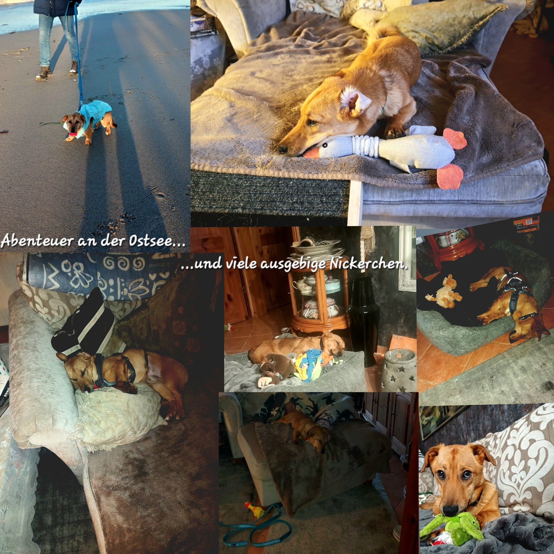 nachdem die süße Laya (Aglaya) nun 8 1/2 Monate bei uns ist, möchten wir euch gerne eine kurze Rückmeldung geben, wie es ihr geht. Sie ist inzwischen so richtig bei uns angekommen und ein absoluter Goldschatz. Nachdem sie anfänglich noch recht unsicher war, hat sie sich doch sehr schnell in unseren Tagesablauf eingefunden und sich mit unseren Katzen arrangiert. Sie mag besonders unsere langen Spaziergänge. Im Schnitt laufen wir 7 km mit ihr am Tag. Sie liebt das Toben über die Wiesen und ganz besonders auch am Strand und ohne Leine. Sie orientiert sich super an uns und läuft ganz brav mit. Die ersten Kommandos hat sie schon gelernt und wir haben ihr dabei ganz viel Zeit gelassen, so dass sie ihre Angst nach und nach ablegen konnte. Die ersten Urlaube am Strand fand sie richtig cool. Nachdem sie sich so richtig ausgetobt hat, genießt sie das Chillen auf ihrem Sofaplätzchen und ausgiebige Streicheleinheiten. Vielen Dank für diesen tollen Hund! 😍