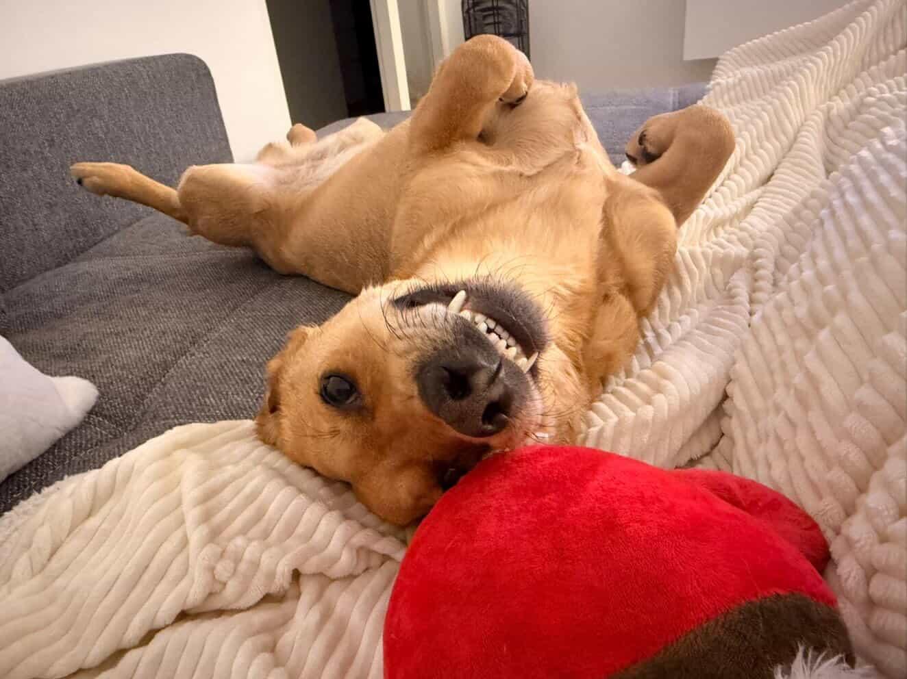 Dem kommen wir natürlich gerne nach und sind viel mit Angeln und Bällen beschäftigt. Am liebsten rollt er sich unter dem Sofa oder unter der Treppe rum, um sich bei der Jagd zu verausgaben.
