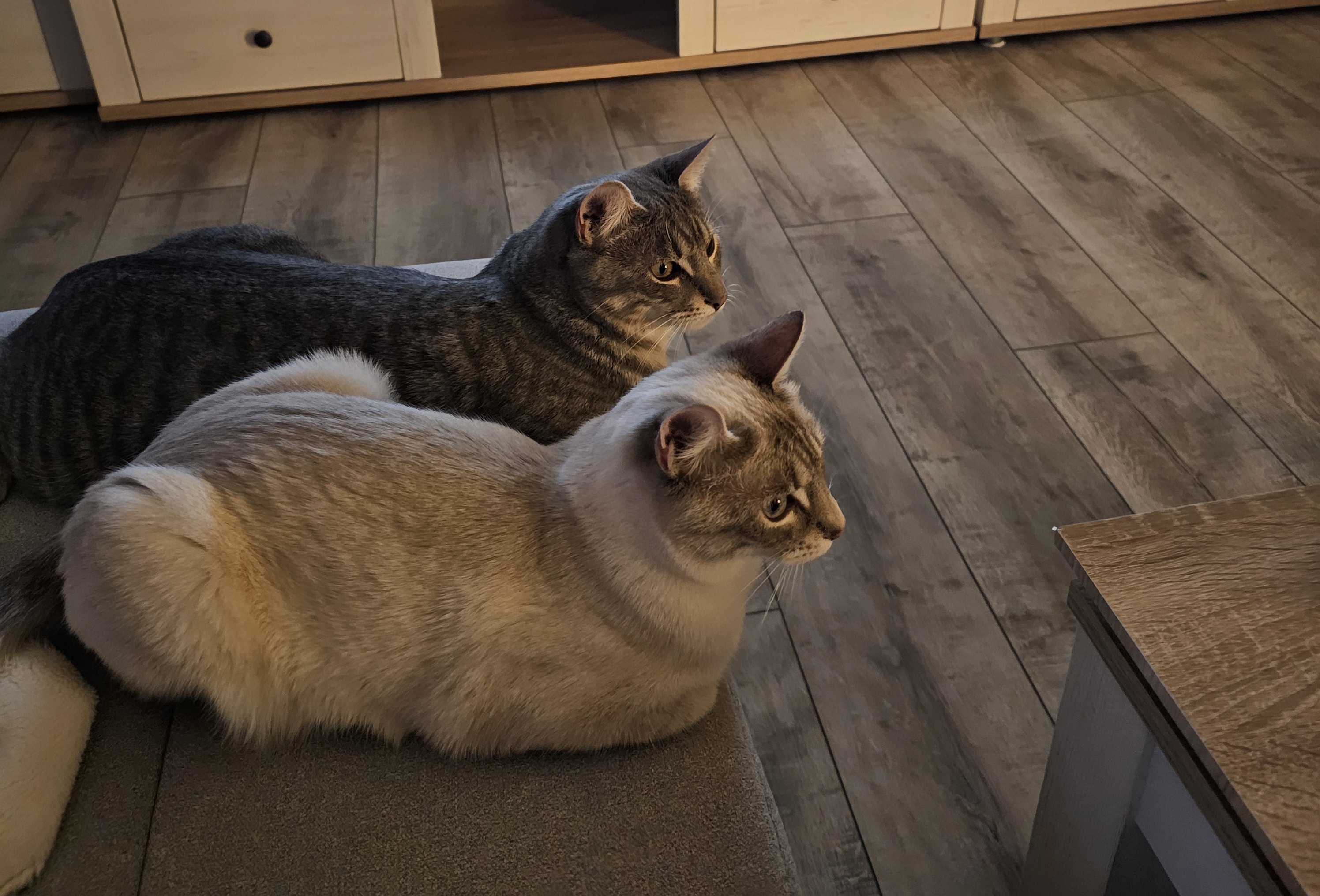 Die erste Nacht liegt hinter uns und war erstaunlich ruhig. Die beiden haben gestern ihr neues Reich erkundet und unsere Herzen im Sturm erobert. Diego ist noch etwas zurückhaltend, Donna hingegen fordert mit Kopfstößen bereits ihre Streicheleinheiten ein. Gestern war der Trinkbrunnen noch komisch, heute schmeckt das Wasser aber schon und man kann auch ganz toll die Füße darin baden. Wir sind sehr glücklich und dankbar, das ihr uns diese beiden zauberhaften Wesen anvertraut habt und wir ihnen ein schönes Zuhause geben dürfen.