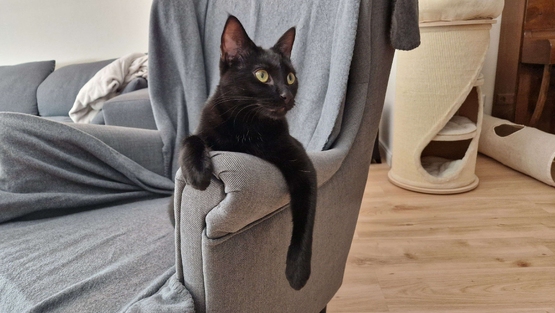 Die beiden sind sehr verschmust und fast immer da wo wir sind. Gleichzeitig sind sie sehr verspielt und spielen auch viel miteinander, am liebsten fangen, Treppe hoch und runter. Sehr gerne verbringen sie Zeit auf dem Balkon. Schließlich kann man dann nicht nur die Vögel in unserem Garten beobachten, sondern auch was die Nachbarn so machen.