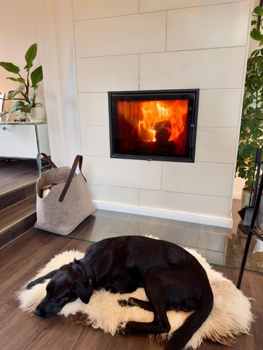 Mein liebster Platz ist direkt vorm Kamin, jetzt an den kalten Tagen. Sooo kuschelig warm ist das!