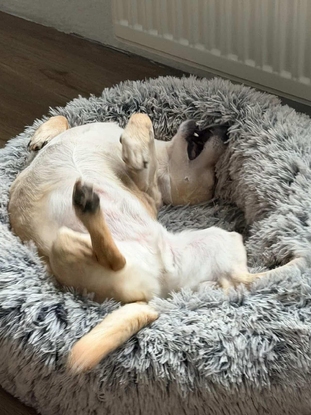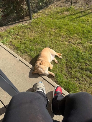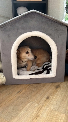 Er hat immer noch keinerlei Interesse an Spielzeug aller Art. Wir bieten immer wieder an, oder legen sie ihm hin, dass er sie beschnuppern kann. Bei Stöckchen ist es etwas besser geworden, er beschnuppert sie, vielleicht mal lecken, anstatt sich hinter Frauchchen zu verstecken. Er traut sich inzwischen auch in alle Räume der Wohnung, was vorher auch nicht möglich war. Er hatte Angst. Jetzt kommt er uns fröhlich hinterher. Er muss ganz schlimme Erfahrungen gemacht haben. Hören tut er auf Frauchen zu 97,3% aufs Wort, es sei denn, sein Dackeltrieb kommt durch und sagt, Nö. Er kann Moin, Sitz, High Five, Spin, tot spielen. An Platz arbeiten wir gerade. Gassi ist immer noch manchmal eine Herausforderung, wenn wir anderen Hunden begegnen. Wir vermuten territorial? Beim Friseur war er diese Woche ein wahrer Engel bei den anderen Hunden.