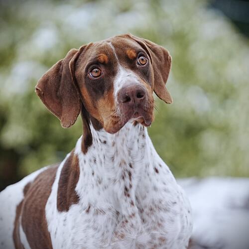 Auch menschliche Nähe mag er sehr und genießt angebotene Streicheleinheiten sehr. Dieser hübsche Kerl ist aufgrund seiner Genetik ein leidenschaftlicher Jäger und möchte auch zukünftig sicher gern adäquat Bewegung und tolle Gerüche in der hübschen Nase haben.