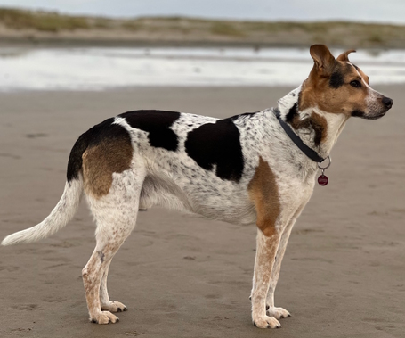 - tricolor, 55 cm Schulterhöhe, 21 kg Gewicht